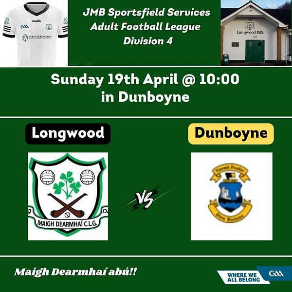 Longwood travel to Dunboyne on Sunday morning for the 4th round of the Adult Football League.